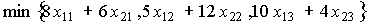 Все получатели грузов пронумерованы: 1 - книжный магазин, 2 - мебельный магазин, 3 - фермерское хозяйство, 4 - сталелитейный завод. Целевая функция представляет собой суммарные затраты. Первые четыре ограничения связаны с необходимостью доставить получателям нужное им количество груза, следующие - с невозможностью одновременного использования одной машины на некоторых маршрутах.