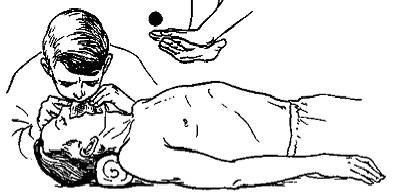 Подготовив дыхательные пути пострадавшего, вдувают воздух в рот или нос каждые 5—6 секунд, что соответствует 10— 12 дыханиям в минуту.