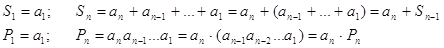 Сумму и произведение элементов прогрессии можно также вычислить по рекуррентной формуле: