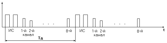 где число каналов Nкан=8, а число служебных канальных промежутков в кадре Nс>1, примем Nс=2.