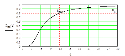 Рабочее отношение мощности сигнала к мощности шума, обеспечивающее заданную надежность Рн =0,8, находим из выражения: