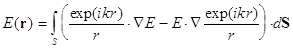 Теория Кирхгофа. В основе теории дифракции Френеля лежит математическое тождество, позволяющее связать значения любой являющейся решением уравнения Д’Аламбера функции E(r) в произвольной точке внутри замкнутой области с ее значениями на поверхности, ограничивающей эту область (интеграл Кирхгофа):