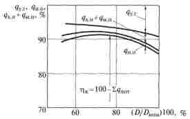 Зависимость КПД котла ηк от его нагрузки (D/Dном) 100