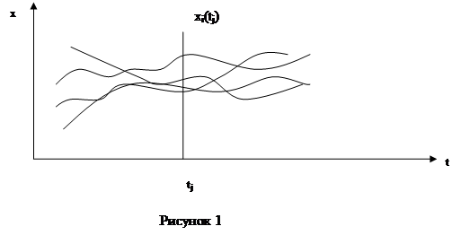 Случайным называется сигнал, мгновенные значения которого изменяются во времени случайным образом. Он описывается случайной функцией времени Х(t). Эту функцию можно рассматривать как бесконечную совокупность функций xi(t), каждая из которых представляет собой одну из возможных реализаций X(t). Графически это можно представить следующим образом (рисунок 1):