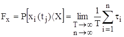 - функция распределения, которая определяется как интегральная вероятность того, что значение xi(tj) в j-й момент времени будут ниже некоторых значений X: