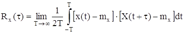 - корреляционная функция. Она характеризует стохастическую (случайную) связь между двумя мгновенными значениями случайного сигнала, разделенного заданным интервалом времени τ