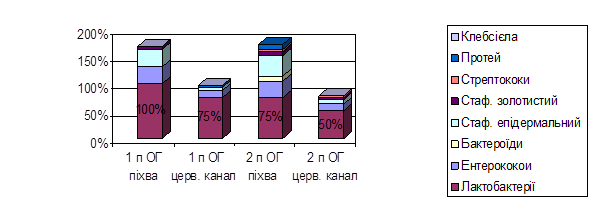 Рис.3 Склад умовно-патогенної мікрофлори піхви та цервікального каналу після лікування