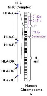 Комплекс генов HLA (главного комплекса гистосовместимости человека) компактно расположен на коротком плече 6-й аутосомной хромосомы, занимает 3500 kb (тысяч пар оснований) и содержит более 220 генов.