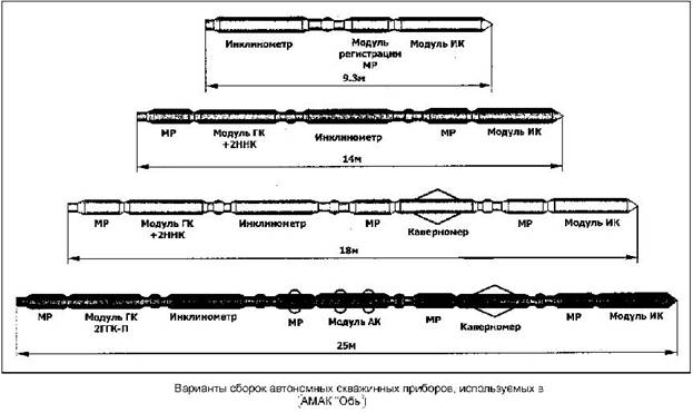 Компоновка скважинных приборов забойных телесистем может быть разнообразной и зависит от предлагаемого заказчику комплекса геофизических, технологических и др. параметров.
