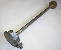 Принцип действия - При изменении уровня ПЖ штанга с поплавком отклоняется на определённый угол и в измерительной обмотке преобразователя вырабатывается синусоидальный сигнал, амплитуда которого пропорциональна углу поворота вала преобразователя.