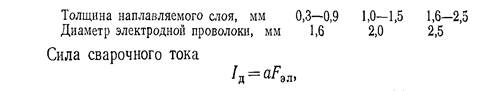Расчет режима наплавки выполняется в зависимости от толщины наплавляемого слоя:
