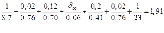 1/8,7+0,2/1,92+dутеп/0,076+0,04/0,76+1/23=1,63,