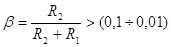 Из условия (2) следует, что R1 » 10R2. Примем R1 = 12 000 Ом и R2 = 1 500 Ом, тогда