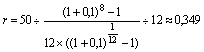 Если же взносы на депозит производить ежемесячно (p = 12), то, снова применяя формулу (6), и деля полученный результат на 12, найдем: