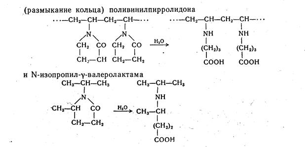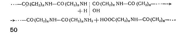 При реакциях химической деструкции полимеров на разрыв одной связи в полимере расходуется одна молекула низкомолекулярного вещества. Например, при гидролизе полиамидов для омыления одной амидной связи требуется одна молекула воды: