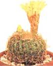 Нотокактус солнцелюбивый (Notocactus apricus) — небольшой шаровидный стебель несколько приплюснут. Много хорошо выраженных ребер с большими загнутыми колючками. Цветки по сравнению с размерами кактуса огромные — до 7,5 см в диаметре желтого цвета (Рис. 4).