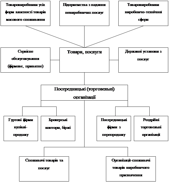 Функції маркетингу, які виконують окремі суб’єкти, взаємоповязують їх у процесі ринкових і комунікативних зв’язків. Схема взаємовідносин суб’єкті в і їх відношення до товарів і послуг зображено на рисунку 1.1. /33,с.180/.