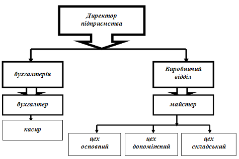 директор – Черняк Анатолій Володимирович має вищу економічну освіту і йому підпорядковуються головний бухгалтер, касир, майстер по виробництву, інженер по ТБ;