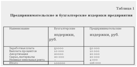 Из анализа данных, приведенных в таблице, можно сделать вывод о том, что предпринимательские издержки превышают бухгалтерские в 1,26 раза.