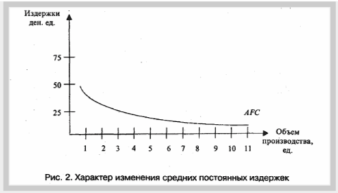 Зависимость средних постоянных издержек от изменения объема производства представлена на рис.2.