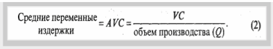 Средние переменные издержки (А VС) представляют собой отношение переменных издержек (VС) к объему производства.