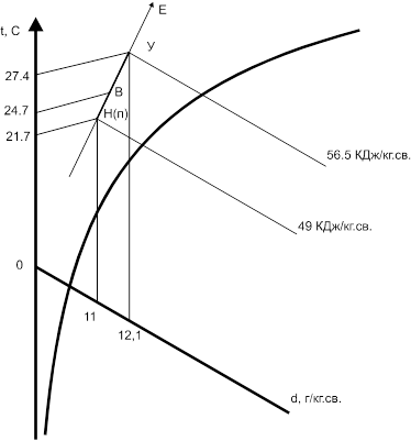 1. т.Н (dн=5,17 г/кг; tн= 8 °С; Iн= 22,5 кДж/кг).