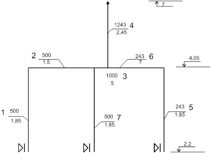 3. Нумеруем участки магистрали и ответвлений, начиная с участка, наиболее удаленного с наибольшим расходом.