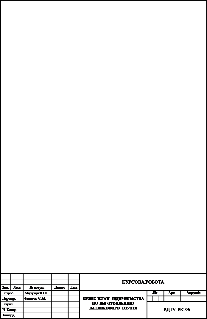 БІЗНЕС-ПЛАН ПІДПРИЄМСТВА ПО ВИГОТОВЛЕННЮ ВАЛЯНКОВОГО ВЗУТТЯ