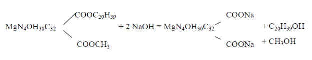 Сложные эфиры способны к реакции со щелочью (реакция омыления), при этом их молекула расщепляется на кислоту и спирт. Из пигментов листа омыляется только хлорофилл, от молекулы которого под влиянием щелочи отщепляются метанол и фитол: