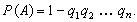 Р (A) = 1 — q1q2 ... qn.(*)