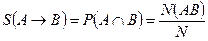 Поддержка ассоциативного правила S — это число транзакций, которые содержат как условие, так и следствие. Например, для ассоциации A ® B можно записать: