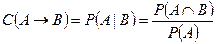 т.е. число транзакций, в которых появляются предметы A и B, отнесенное к числу транзакций, содержащих только A.