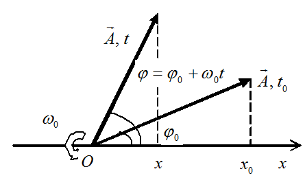 , равный начальной фазе колебаний. Тогда проекция вектора