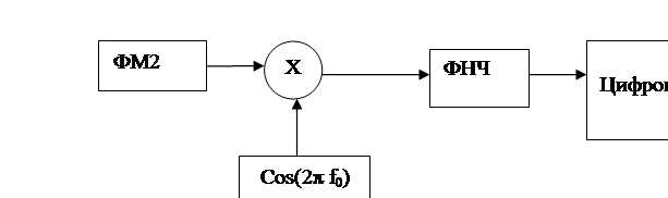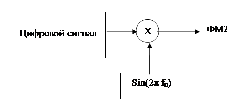 Зарисуйте упрощённые схемы модулятора-демодулятора для сигнала ФМ2.