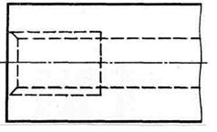 Р е з ь б а в о т в е р с т и и. Резьбу в отверстии в продольном разрезе изображают сплошными тонкими линиями по наружному диаметру и сплошными толстыми основными по внутреннему диаметру (рисунок 2.21,б ).Границу резьбы показывают сплошной толстой — основной линией (рисунок 2.21,б), доводя ее до наружного диаметра резьбы. На видах, где отверстие с резьбой проецируется в виде окружности, по наружному диаметру резьбы сплошной тонкой линией проводят дугу окружности, приблизительно равную 3/4 окружности, разомкнутую в любом месте (но только не на центровых линиях), а контур отверстия (внутренний диаметр резьбы) очерчивают толстой основной линией (рисунок 2.21,б). Резьбу в отверстии без разреза изображают штриховыми линиями (рисунок 2.22).
