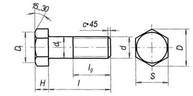 Болт.Болт представляет собой цилиндрический стержень, на одном конце которого имеется головка, на другом — резьба для навинчивания гайки, рисунок 2.30