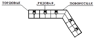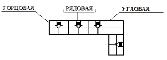 Основной тип объёмно-планировочного решения жилого здания – секционный. Отличительная черта секционного дома – группировка квартир на каждом этаже вокруг лестницы. Число секций в здании определяется по числу лестниц. По расположению в здании секции бывают рядовые, торцовые, угловые и поворотные (рис.1):