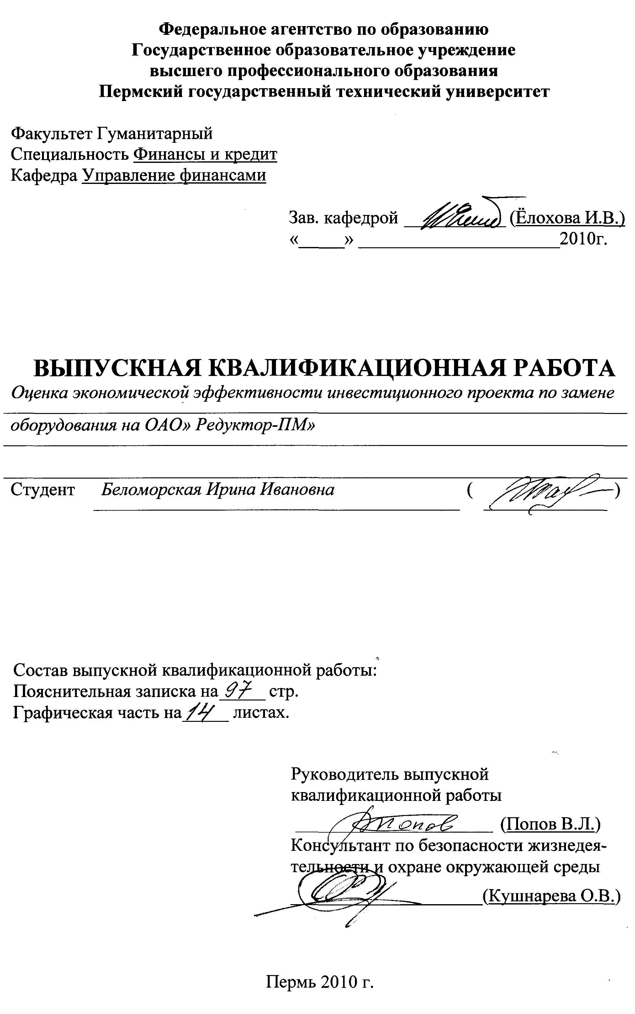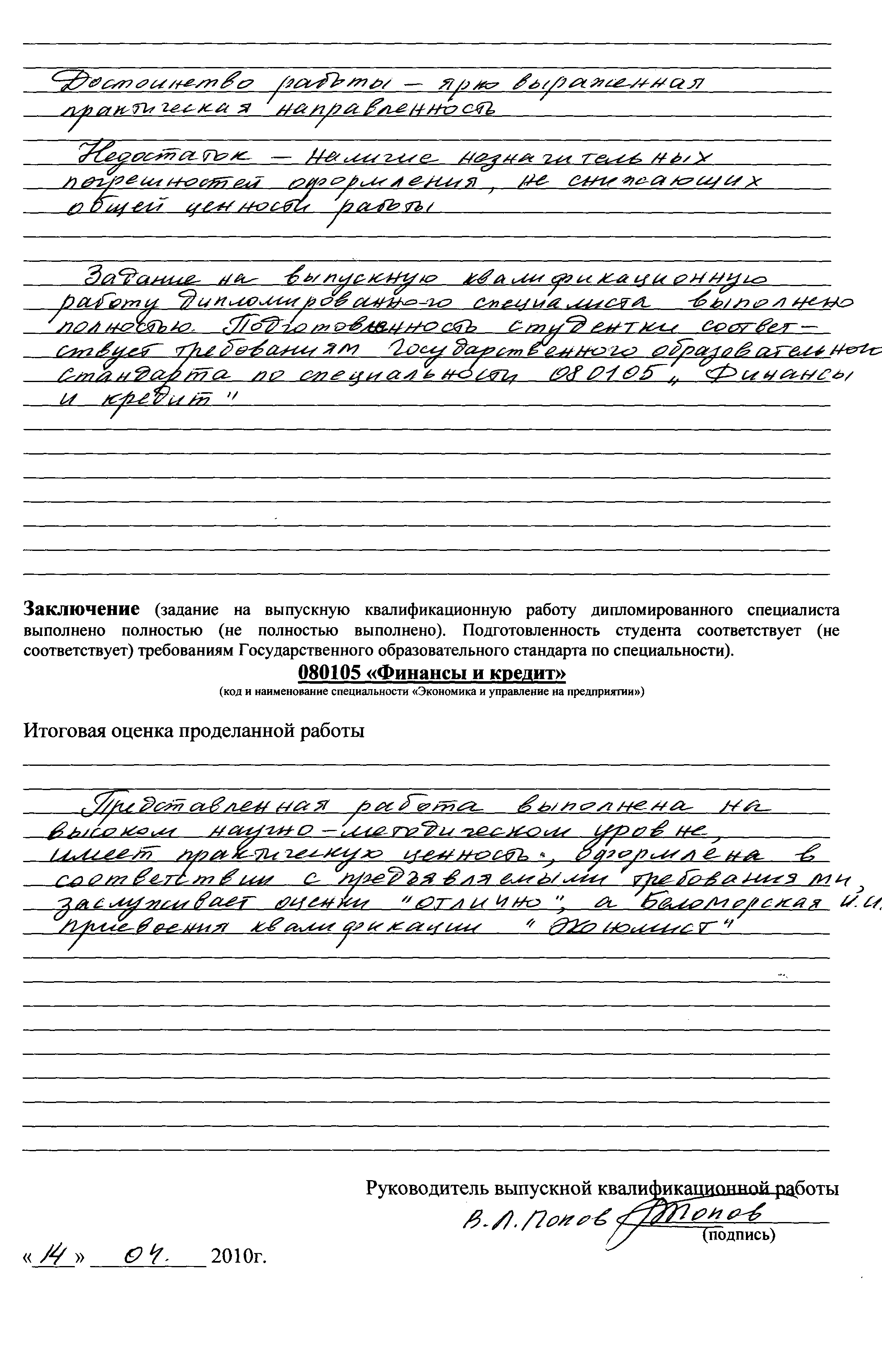 НА ВЫПУСКНУЮ КВАЛИФИКАЦИОННУЮ РАБОТУ