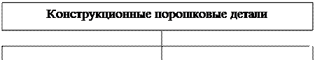 Наиболее распространёнными видами спеченных изделий являются конструкционные детали, применяемые в машинах, механизмах и приборах. В зависимости от условий работы детали подразделяют на ненагруженные, малонагруженные, средненагруженные и сильнонагруженные, а по типу материала – на основе железа или цветных металлов и сплавов.