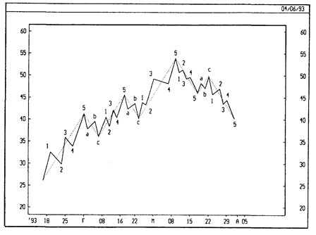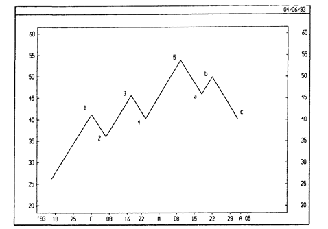 На следующем рисунке показаны восемь волн, образующих базовую модель «53». Они отмечены цифрами 1, 2, 3, 4, 5 и буквами а, b и с.