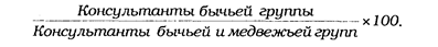 Коэффициент быков/медведей определяется путем деления числа консультантов бычьей группы на число консультантов обеих групп. Количество консультантов, занимающих нейтральные позиции, в расчет не принимается.