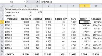 27. Установите, что в пенсионный фонд удерживается 1% от начисленной заработной платы и премии. При этом в формулах ссылайтесь на ячейку ВЗ, вспомните про абсолютную адресацию.