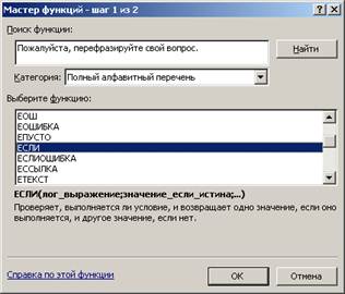 Цели работы: редактирование формул, сортировка табличных данных, применение Мастера функций, функция ЕСЛИ.