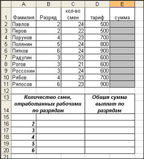 20. Далее копируем за один прием ячейки B1, C1 и D1 в строки 2 – 5.