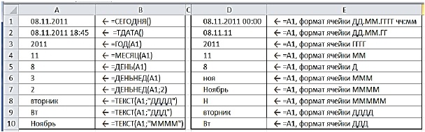 С использованием формата ячеек для типа дата/время можно показать даже название дня недели и месяца, как показано на рисунке 30.