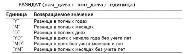 Рисунок 32 - Синтаксис функции РАЗНДАТ