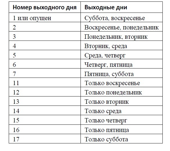 Значения аргумента выходной для функций ЧИСТРАБДНИ.МЕЖД и РАБДЕНЬ.МЕЖД
