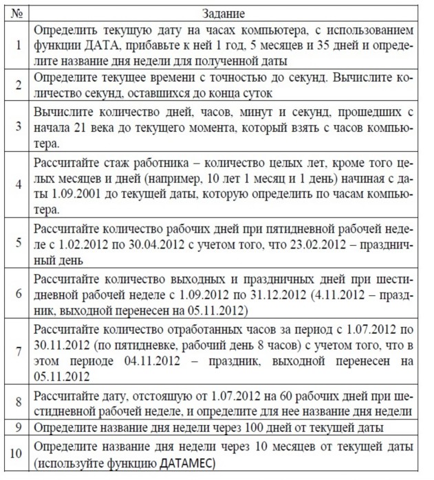 б) Выполнить вариант задания в таблице, соответствующий номеру Вашего компьютера, с использованием функций для работы с информацией типа дата/время: