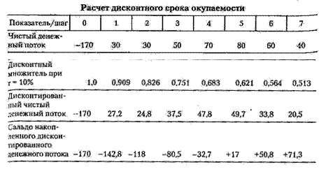 Следует отметить, что один из главных недостатков показателя срока окупаемости — недоучет временной стоимости денег — можно преодолеть. Существует также дисконтный метод окупаемостикак развитие простого метода окупаемости проекта. По этому методу определяется момент, когда дисконтированные денежные потоки доходов сравняются с дисконтированными денежными потоками затрат.
