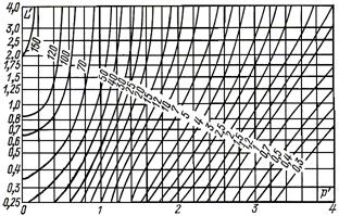 По планам участка обмеряются размеры p и L (p – расстояние от проекции светящей линии до контрольной точки по перпендикуляру), находятся отношения р'=p : h, L'=L : h. Для точки с координатами p' и L' на графиках определяется значение e. Суммирование значений e от ближайших рядов или их частей, освещающих контрольную точку, дает åe. Плотность светового потока, определенная по формуле (4), позволяет выбрать не только тип лампы, но и число ламп в светильнике.